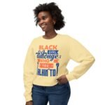 Designed to deliver both warmth and empowerment, this midweight fleece sweatshirt is made from a soft blend of cotton and polyester, ensuring cozy wear whether you’re at a casual gathering, running errands, or relaxing at home. Its vibrant design is not just a graphic—it’s a reflection of bold personality and culture, made for women who speak up and own their space.