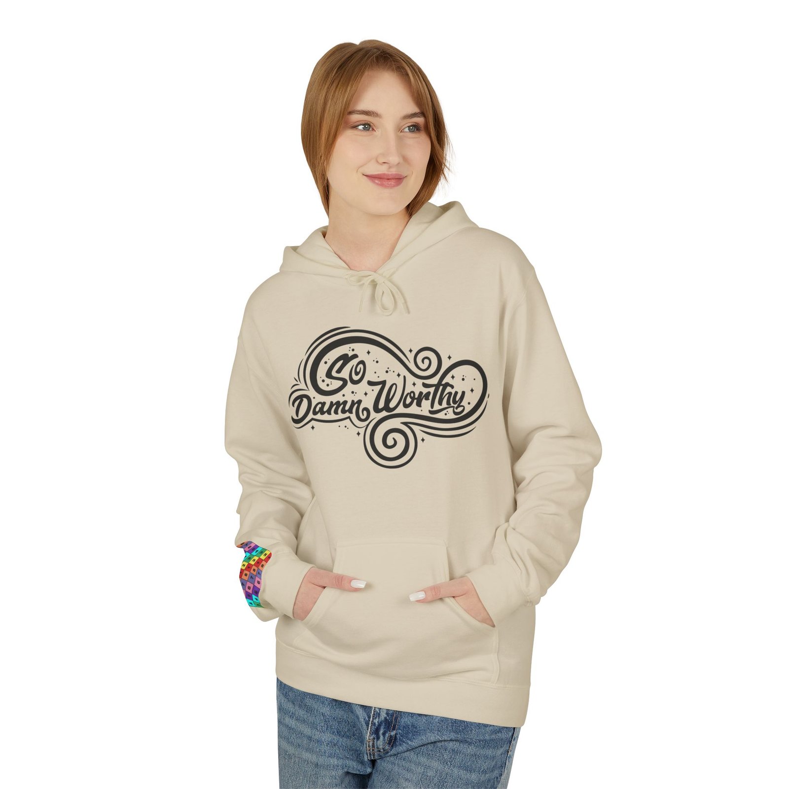 Elevate your casual wardrobe with the Go Damn Worthy Fleece Hoodie, a perfect blend of comfort and style. Crafted with a midweight softstyle fleece, this unisex hoodie offers a relaxed fit and cozy vibe, making it an ideal choice for lounging at home or hanging out with friends. The hoodie’s vibrant prints and motivational design bring a sense of positivity and confidence to your everyday wear, making it not only a stylish piece but a statement of inspiration.