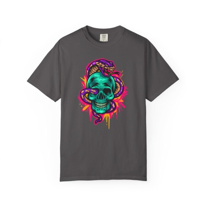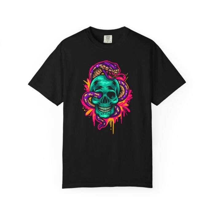 Turn heads and showcase your bold style with the Vibrant Skull and Snake T-Shirt, a unisex garment-dyed graphic tee designed for edgy fashion lovers and festival-goers. Featuring a striking skull and snake design, this shirt exudes creativity, individuality, and gothic streetwear vibes, making it an essential piece for anyone who enjoys standing out from the crowd.
