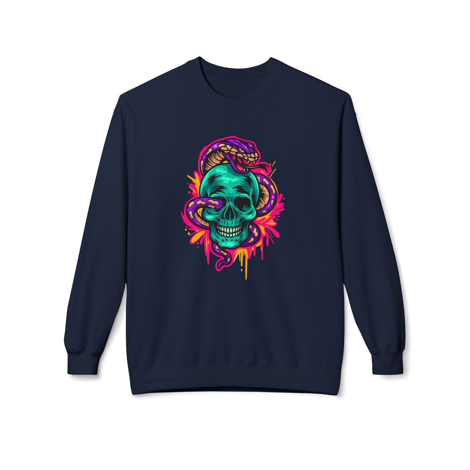 Stay warm and stylish with the Vibrant Skull & Snake Crewneck Sweatshirt, a cozy unisex sweatshirt that brings a touch of bold graphic style to your everyday wardrobe. Designed for those who appreciate comfort and uniqueness, this sweatshirt features a striking skull and snake design that stands out, making it an essential piece for anyone who loves edgy fashion. Whether you’re lounging at home, heading to a weekend gathering, or celebrating Halloween, this sweatshirt is perfect for adding flair and warmth to your outfit.