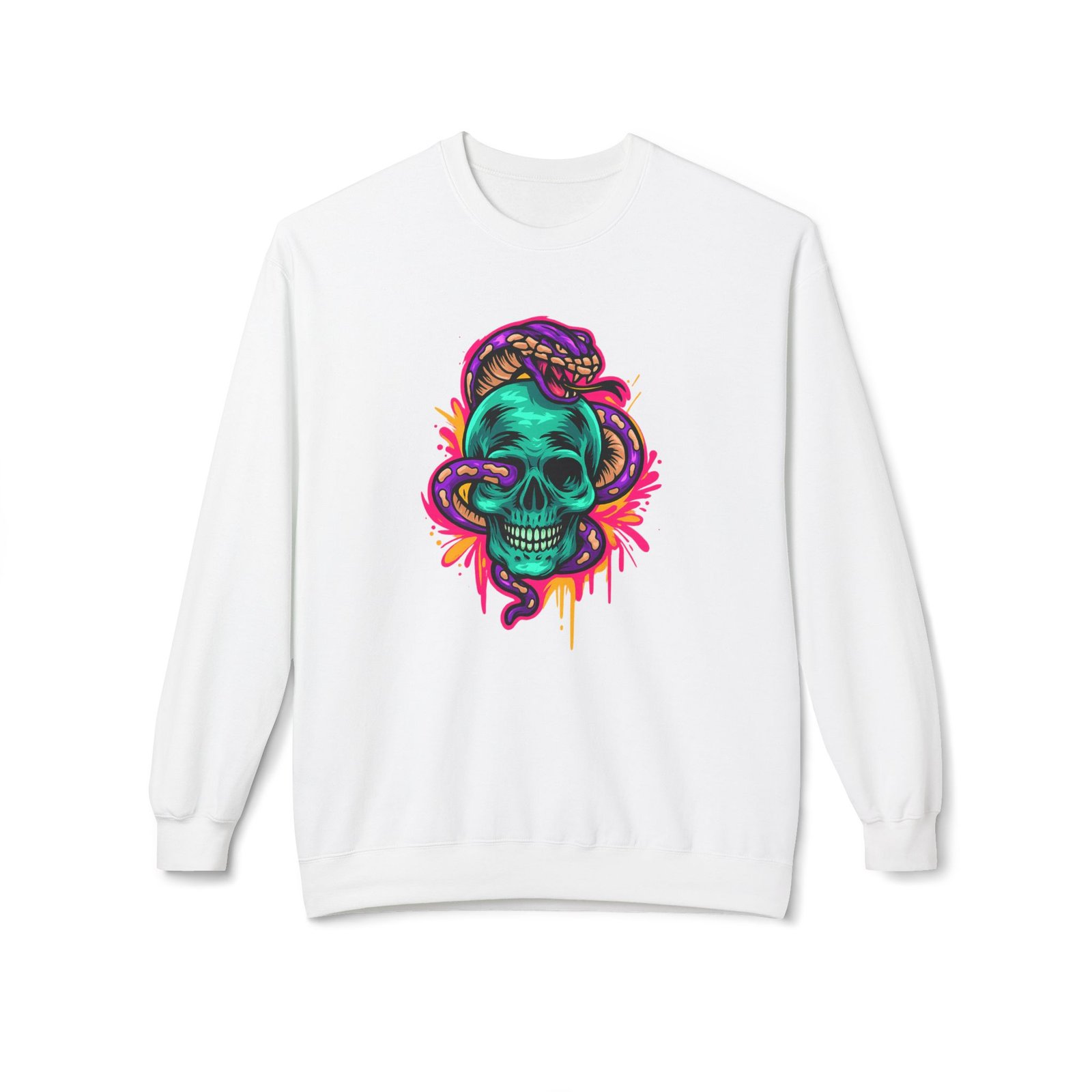 Vibrant Skull & Snake Crewneck Sweatshirt | Trendy Graphic Pullover, Cozy Fashion, Unique Gift for Gamers